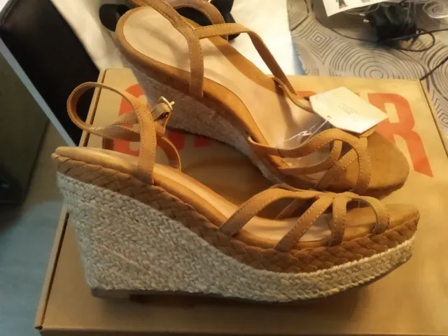 Sandalias cuña esparto tiras marrón