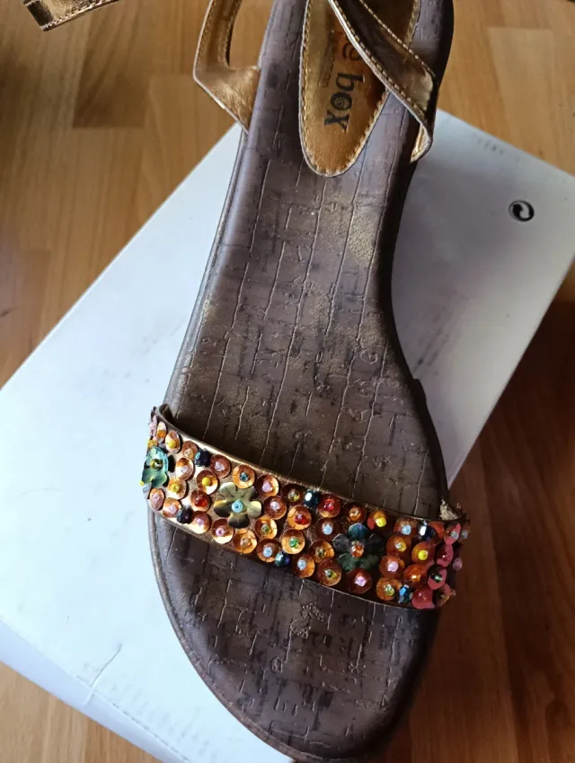 Sandalias cuña marrón cobre y multicolor