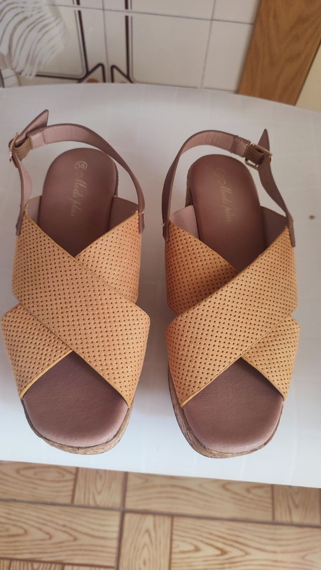 Sandalias cuña mostaza talla 38