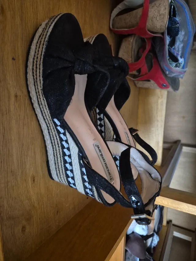 Sandalias cuña negras y beige Talla 41