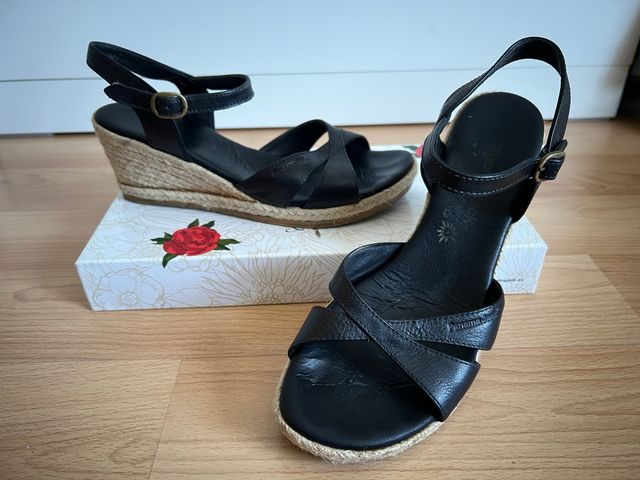 Sandalias de cuña negras