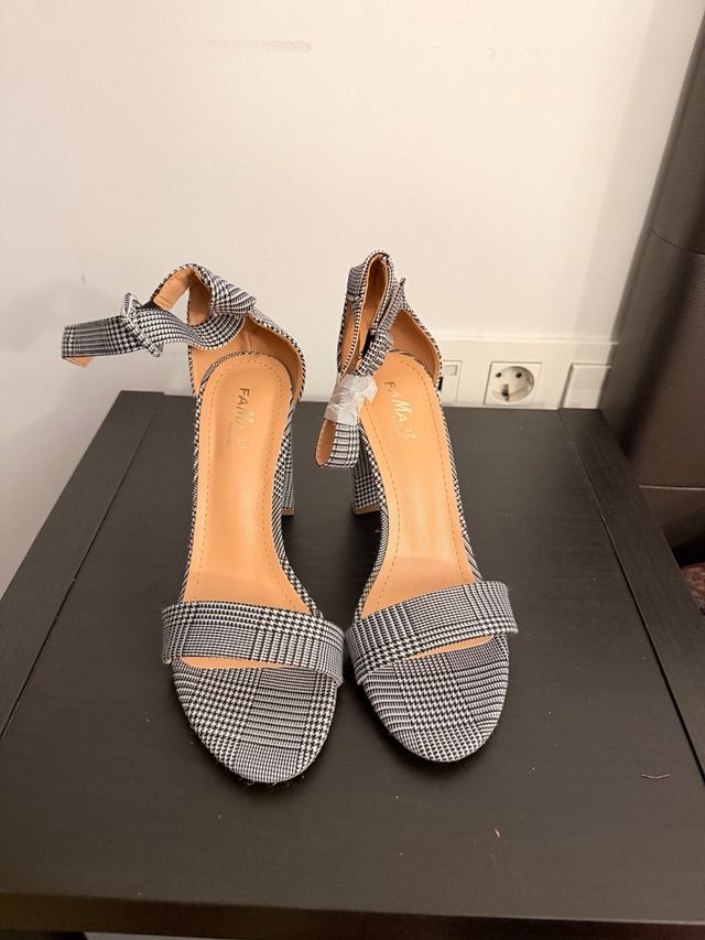 Sandalias de tacón a cuadros