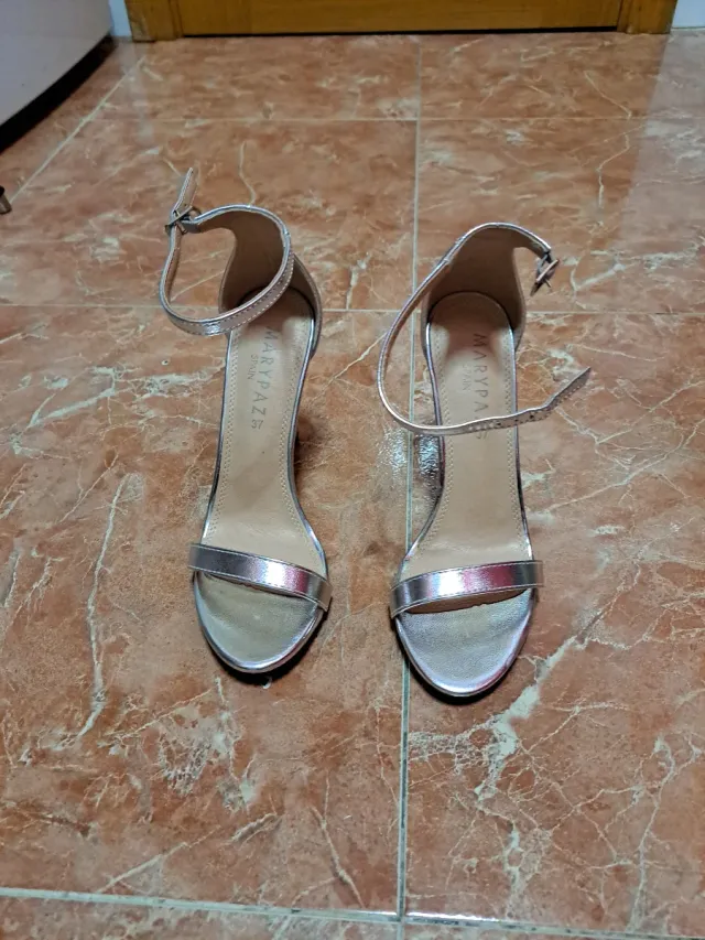 Sandalias de tacón Marypaz plateadas ,un solo uso