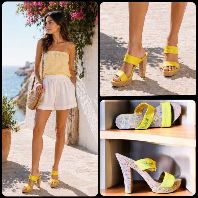 - Tacón alto (aprox. 10 cm) efecto corcho