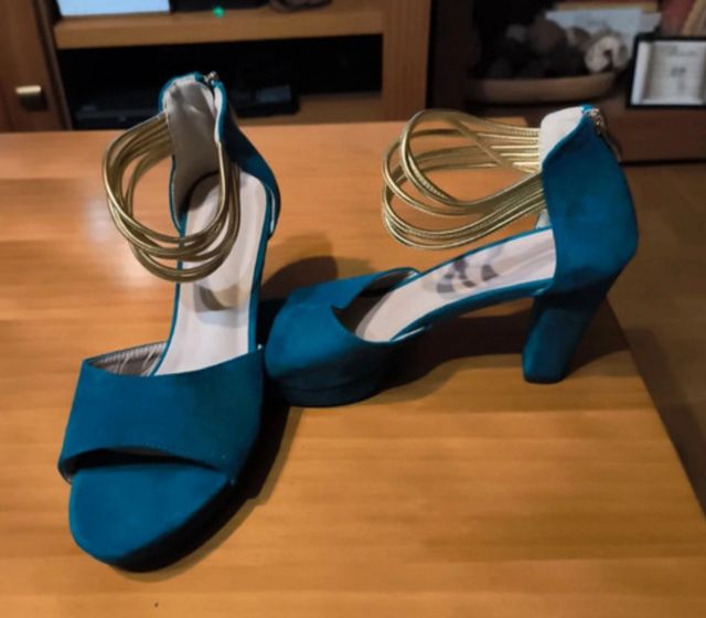 Sandalias de tacón verde y dorado