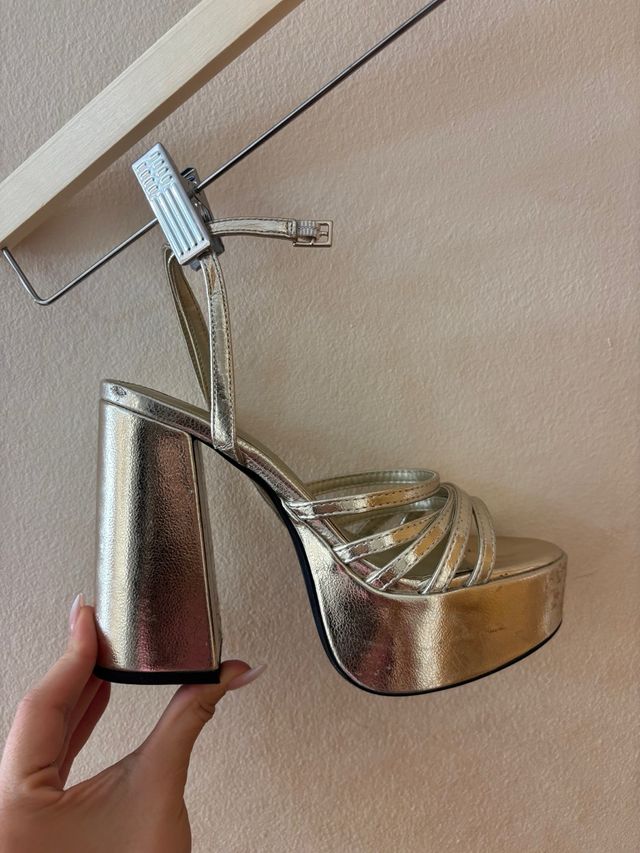 Sandalias doradas plataforma tacón