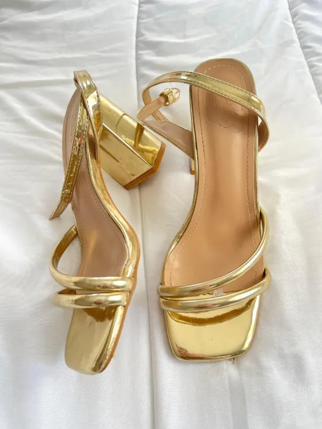 Sandalias doradas tacón elegante 39 boda formal