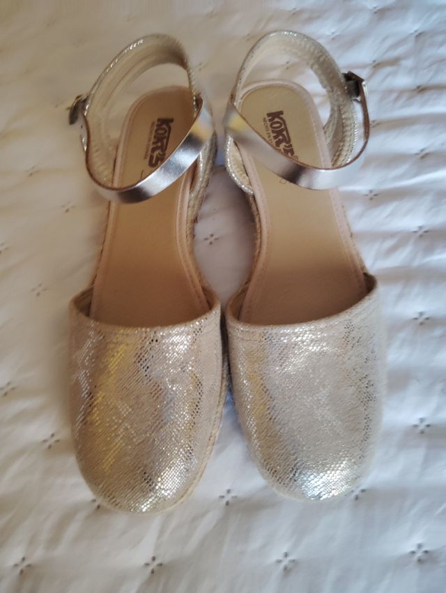 Sandalias de cuña doradas