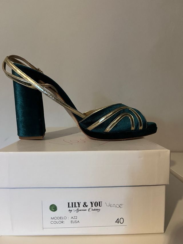 Sandalias Lily & You Talla 40 Verde y Dorado
