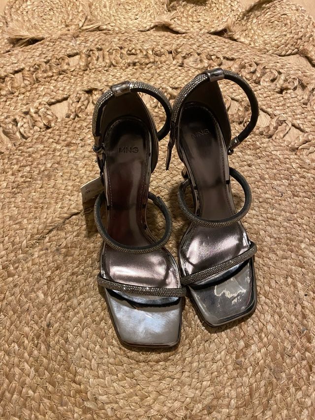 Sandalias Mango fiesta tacón tiras brillantes ,