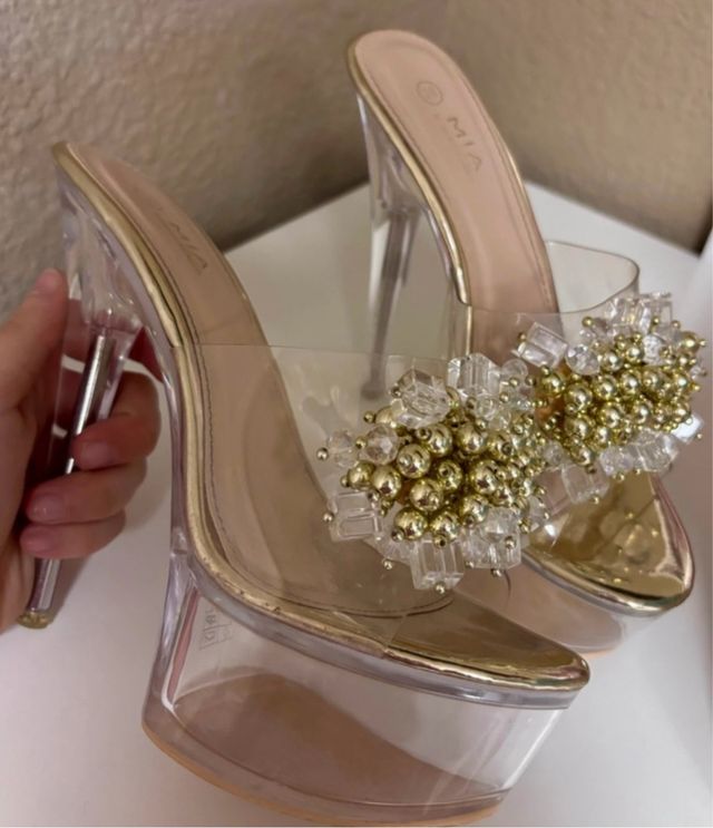 Sandalias MIA Plataforma Transparente Tacón Dorado