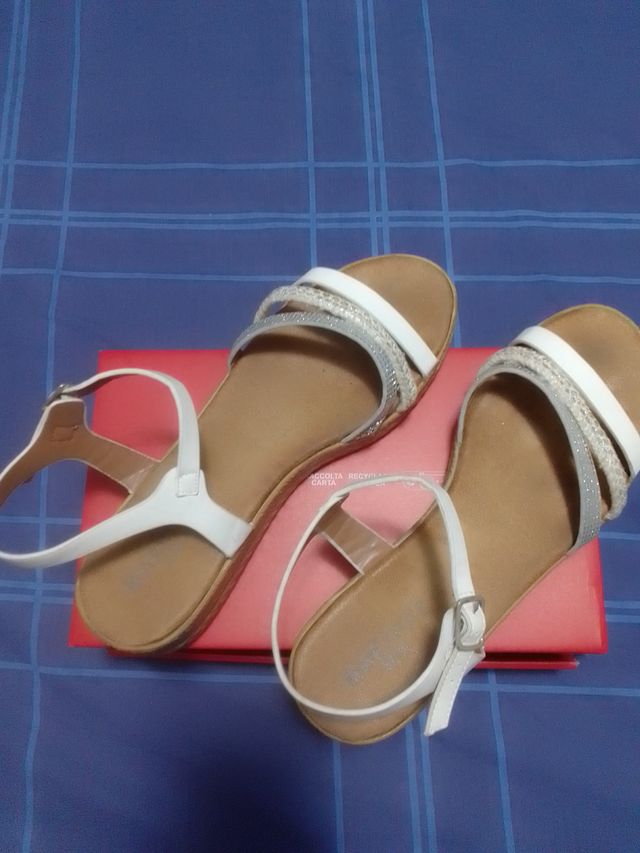 Sandalias Plataforma Mujer Blancas y Plateadas