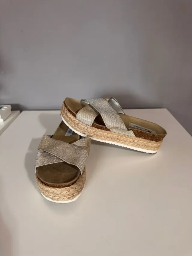Sandalias de plataforma con tiras cruzadas brillantes.