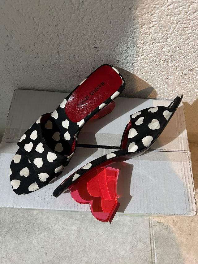 Sandalias RAMON TEJEDA Corazón Negro Rojo