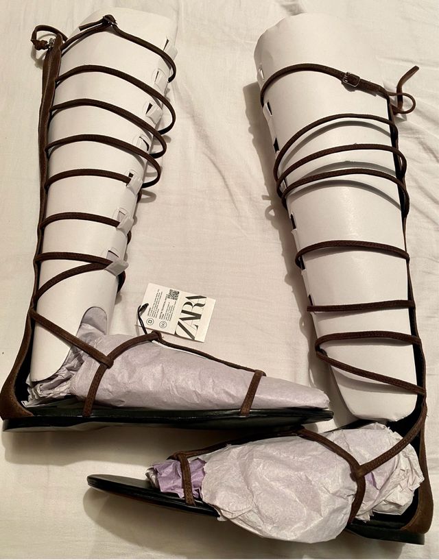 Sandalias romanas Zara ante marrón A ESTRENAR.