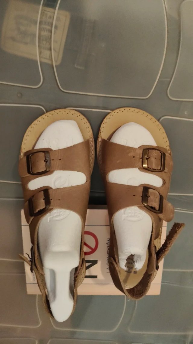 Sandalias estilo BAREFOOT de la marca Ruby. - Color beige/marrón. - Cierre con hebillas. - Suela de cuero.