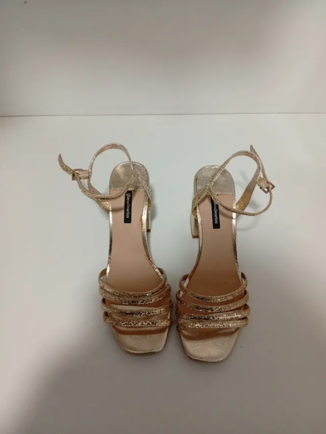 Sandalias Stradivarius doradas tacón