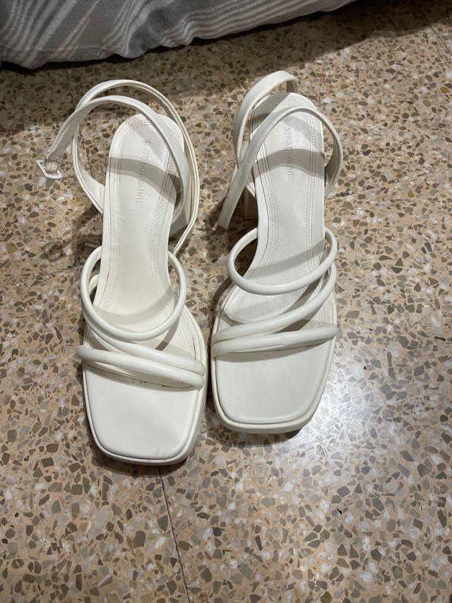 Sandalias Stradivarius tacón tiras blancas