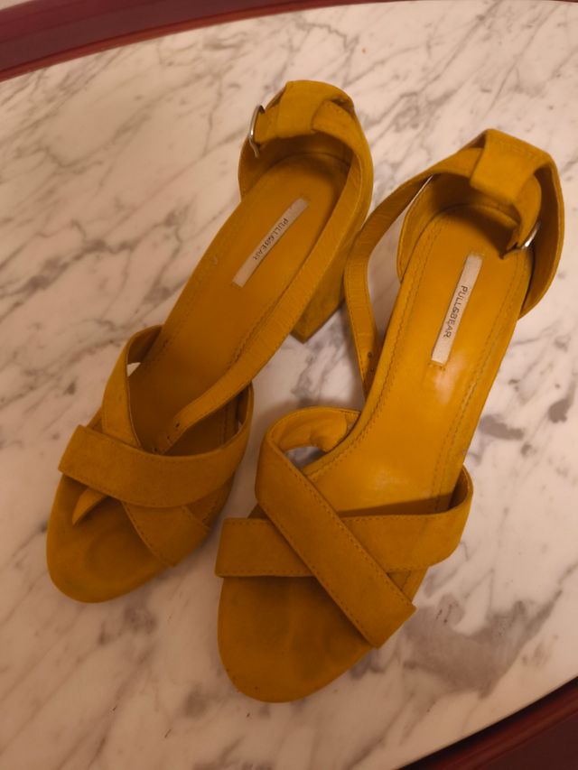 Sandalias tacón amarillas Pull&Bear
