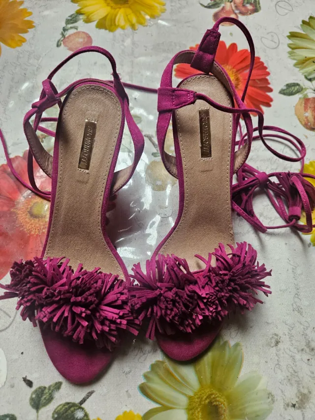 Sandalias tacón Blumarine fucsia flecos