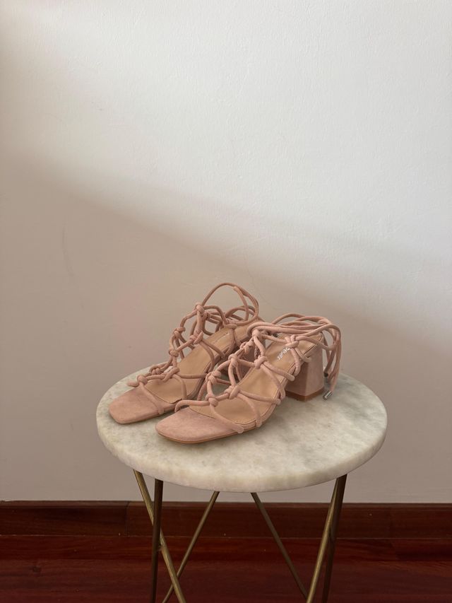 Sandalias tacón midi rosa