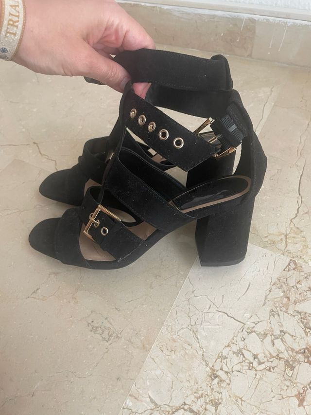 Sandalias tacón negro mujer