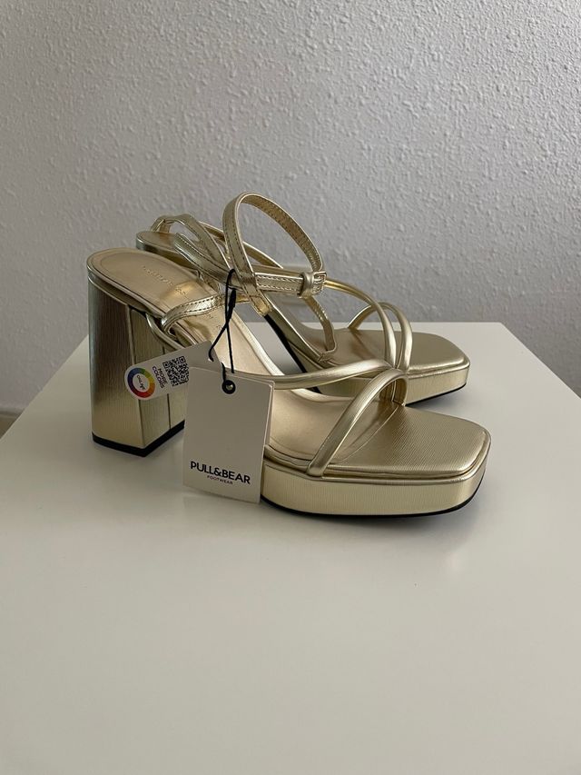 Sandalias tacón Pull&Bear doradas