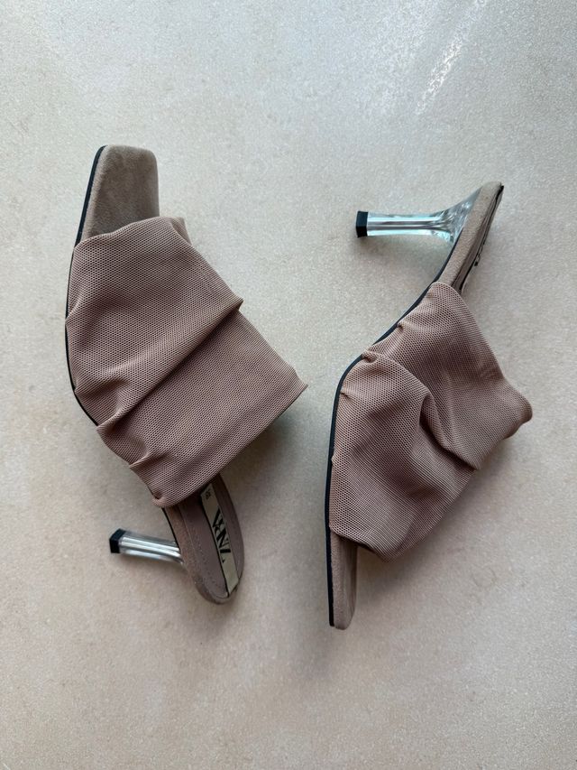 Sandalias tacón Zara beige. Yo suelo llevar una 39