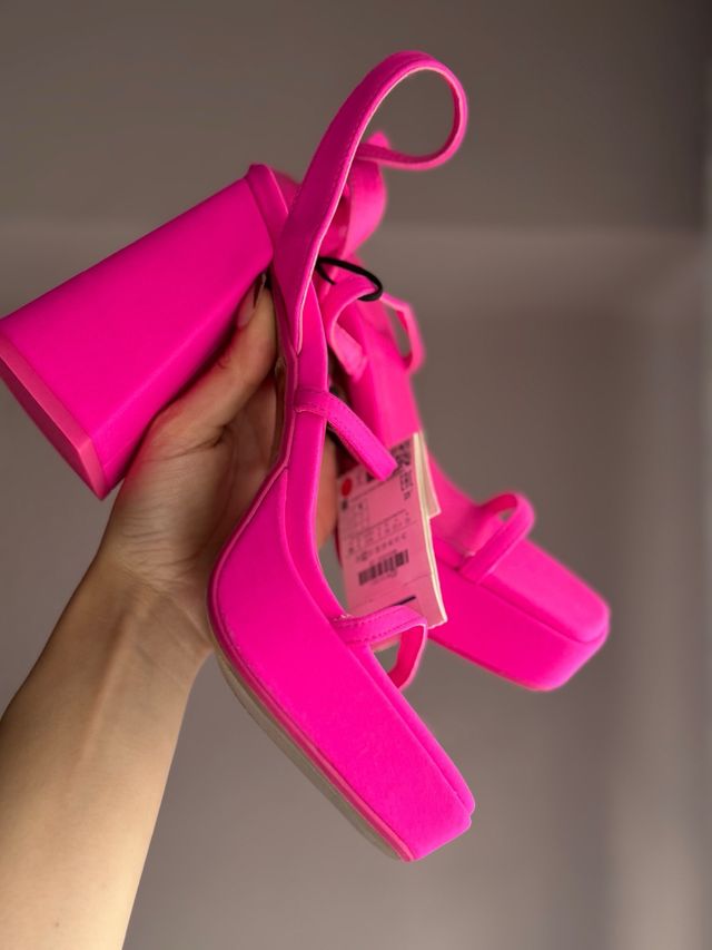 Sandalias Zara Rosa Plataforma Tacón