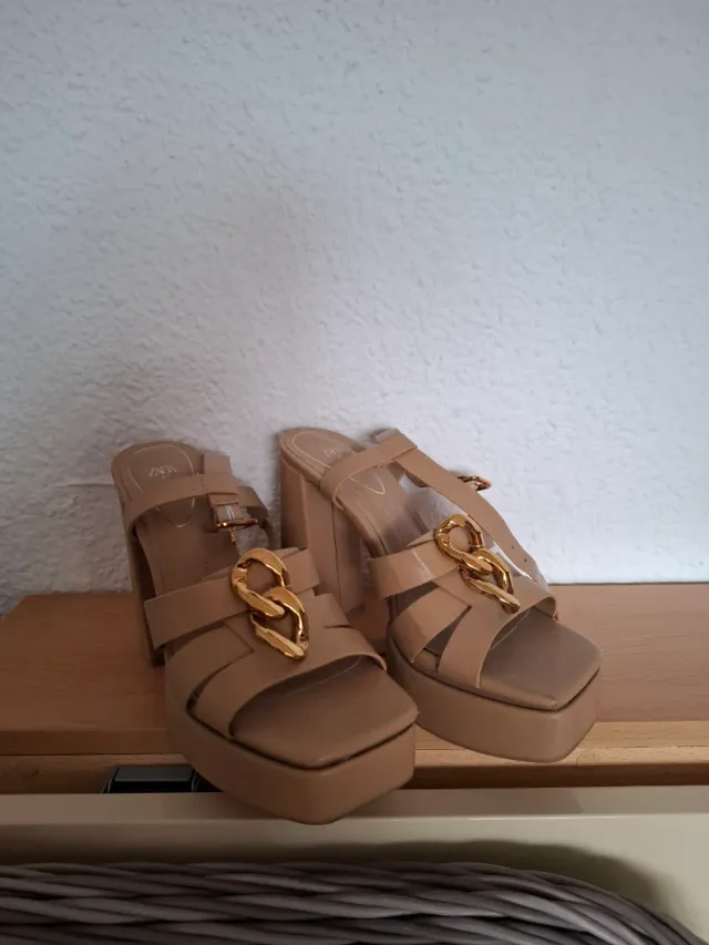 Sandalias Zara Tacón Plataforma Cadena Dorada