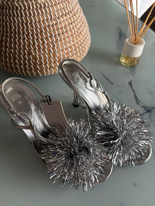 Sandalias Zara Tacon Plataforma Pompones Talla 38