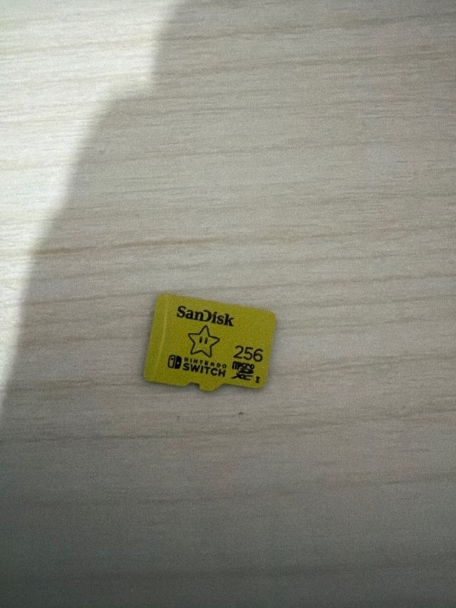 Tarjeta de memoria SanDisk de 256 GB para Nintendo Switch. - Capacidad: 256 GB - Tipo: MicroSDXC - Diseño especial con estrella y logo de Nintendo Switch.