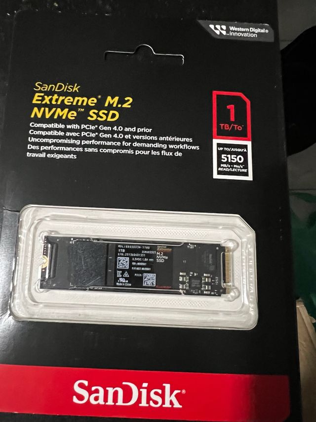 Detalles del productoDisco de estado sólido SanDisk Extreme NVMe M.2 de 1TB, sellado de fábrica.