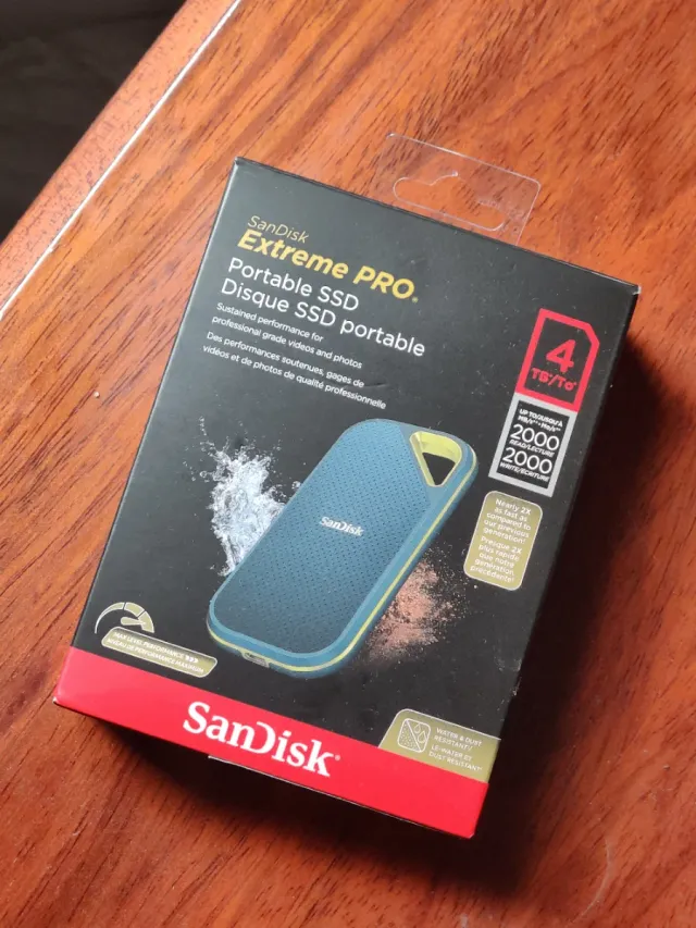 Detalles del productoDisco SSD portátil SanDisk Extreme PRO de 4TB. Diseñado para un rendimiento sostenido en vídeos y fotos de calidad profesional.