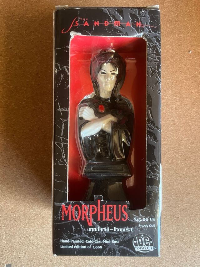 Detalles del productoBusto del personaje Morpheus del comic The Sandman de DC Direct. Edicion limitada numero 1481 de 2000, año 2003. La estatua esta en buenas condiciones, la caja tiene algo de desgaste, ver fotos para comprobar el estado.