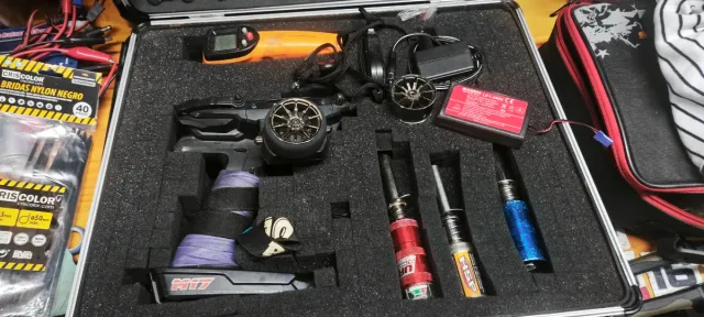 Detalles del productoEmisora RC Sanwa M17 en su maletín.
