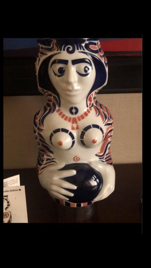 Detalles del productoFigura de cerámica de Sargadelos, modelo Sibila, con diseño inspirado en Estrella Galicia. Una pieza decorativa con un estilo único.