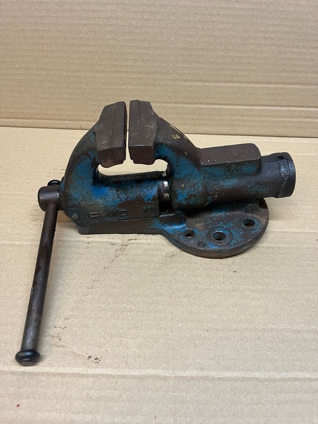Sargento de trabajo con acabado azul y detalles metálicos. - Cuerpo de hierro fundido. - Mordazas de acero. - Base con orificios para fijación.