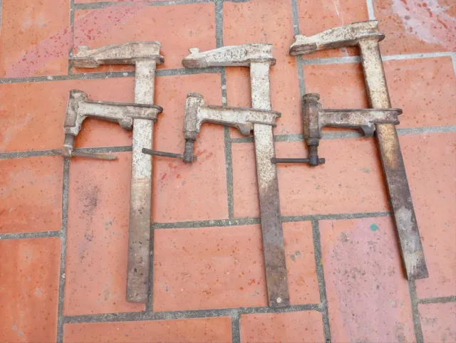 Detalles del productoSet de tres sargentos de carpintero, herramientas esenciales para trabajos de madera.