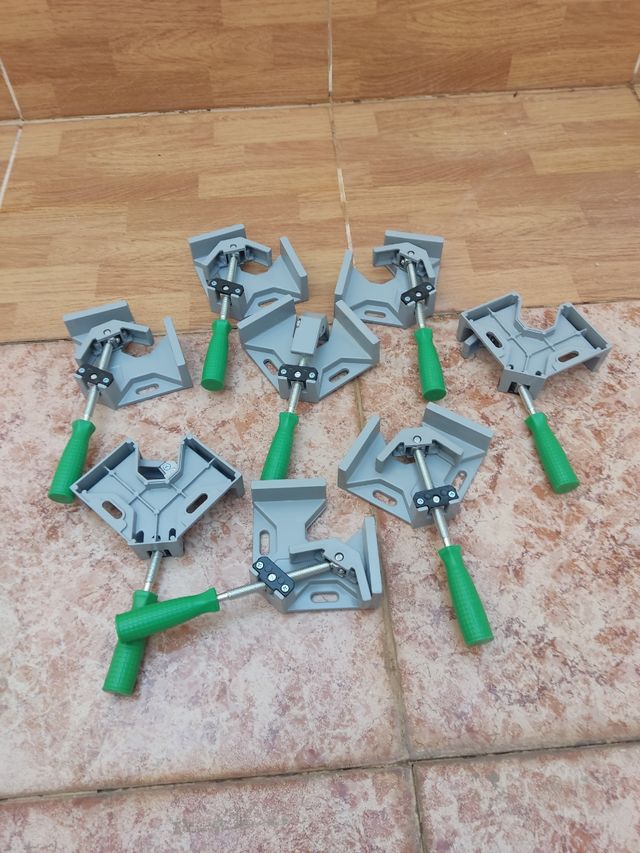 Detalles del productoSet de sargentos de escuadra para fijar piezas en ángulos de 90 grados. Son herramientas útiles para carpintería y bricolaje.