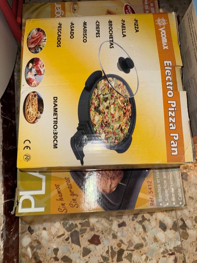 Detalles del productoParrilla eléctrica Voomax para pizzas y otros platos. Ideal para preparar pizzas, paellas, mariscos, brochetas y más.