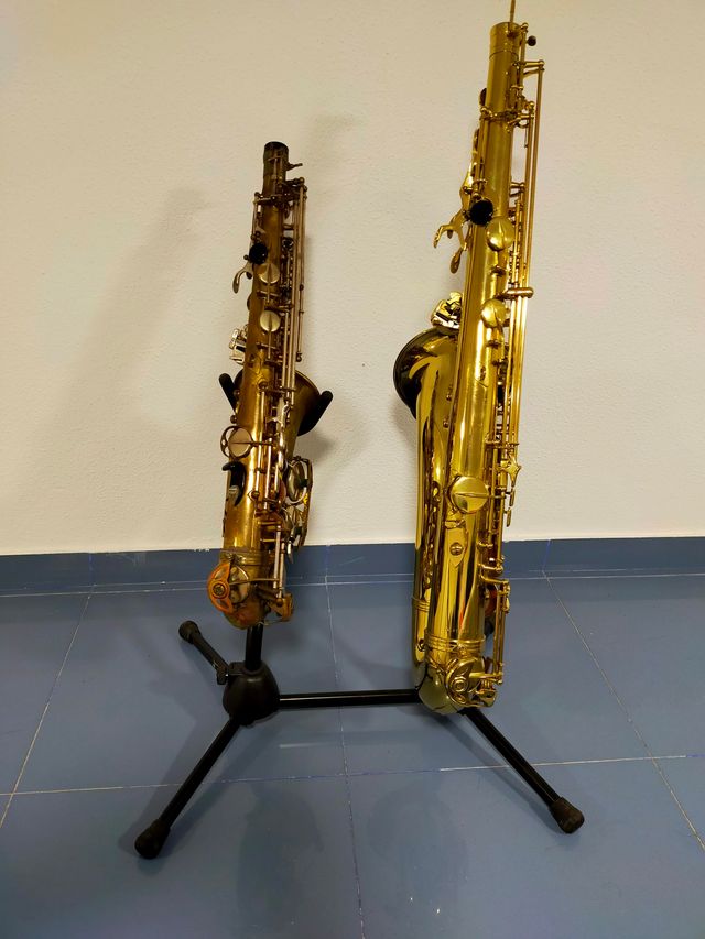 Detalles del productoSaxofones Selmer en buen estado. Se venden dos saxofones: un saxofón alto Selmer Mark VII y un saxofón tenor Selmer. Ambos saxofones presentan un aspecto dorado y brillante. - Incluye dos saxofones. - Marcas: Selmer. - Modelos: Mark VII (alto) y Tenor.