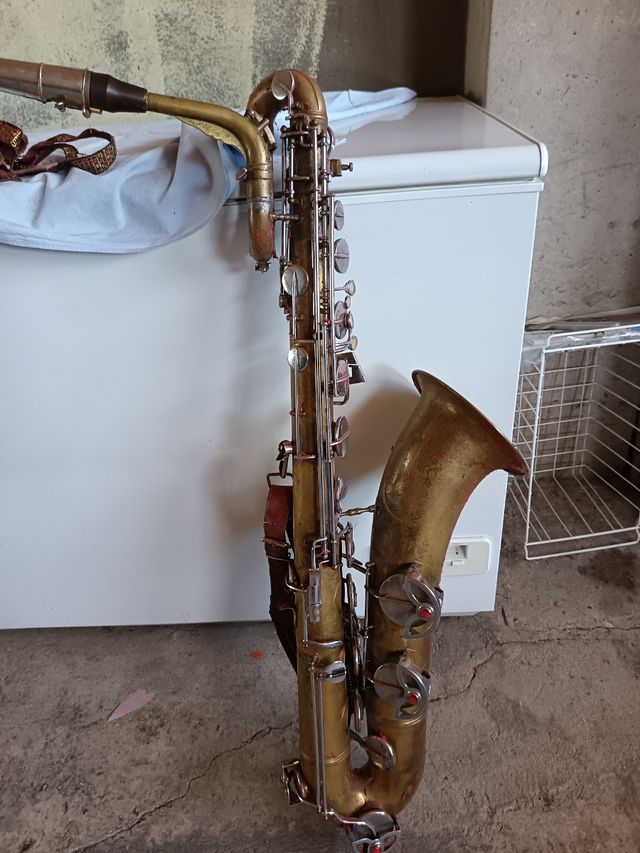 Saxo barítono que necesita restauración. - Instrumento de viento metal. - Acabado en latón.