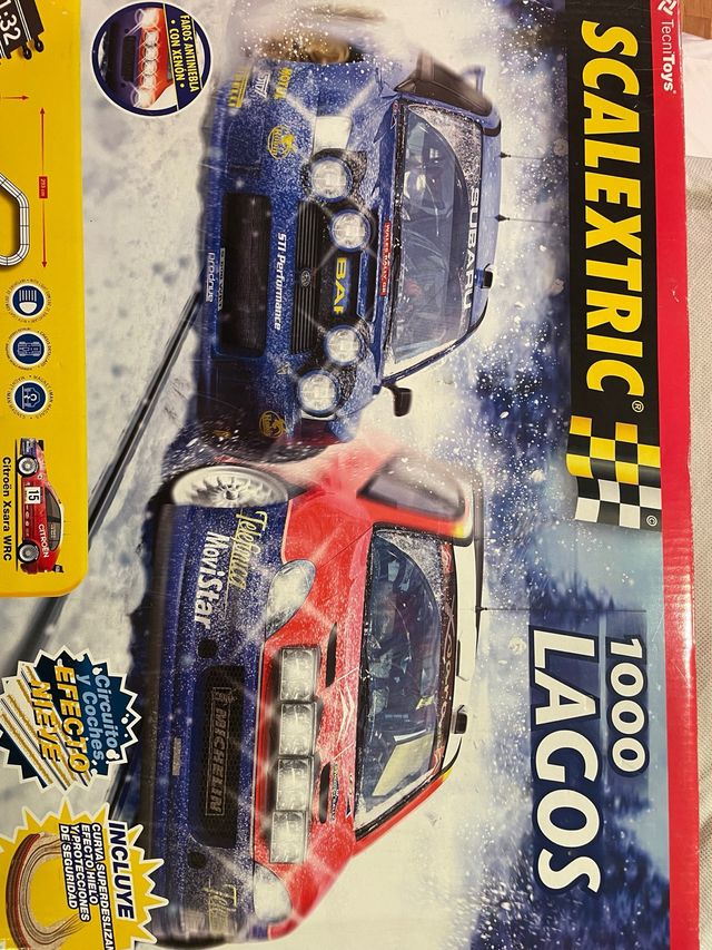 Detalles del productoCircuito Scalextric original, modelo 1000 Lagos, con dos coches de rally.