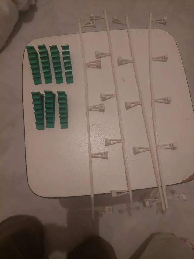 Lote de accesorios para pistas de Scalextric. - 13 vallas de color verde. - 7 peraltes de color blanco.