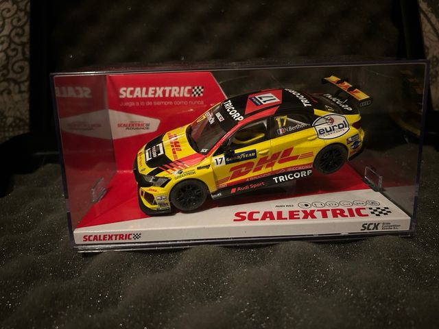 Coche de slot Scalextric Audi RS3 a estrenar. - Modelo Tricorp. - Piloto N. Berthon. - Diseño DHL y Eurol Lubricants.