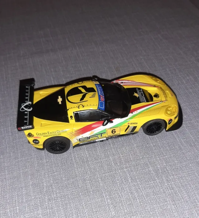 Coche de Scalextric Chevrolet C6R en color amarillo. Escala 1:32. Luces delanteras amarillas.