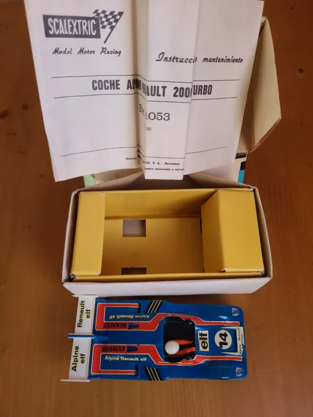 Coche de Scalextric modelo Renault Alpine 200 Turbo - Diseño en color azul con detalles en rojo y blanco. - Incluye instrucciones de mantenimiento.