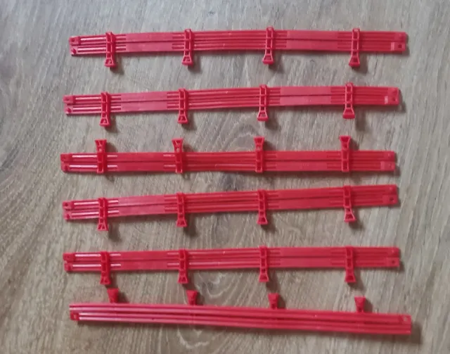 6 barreras rojas para Scalextric Compact 1:43 como nuevas. Protege el circuito ante la salida de pista de los coches.