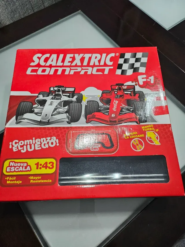 Circuito de Scalextric Compact F-1. - Coches de escala 1:43. - Mando con turbo. - Fácil montaje y mayor resistencia.